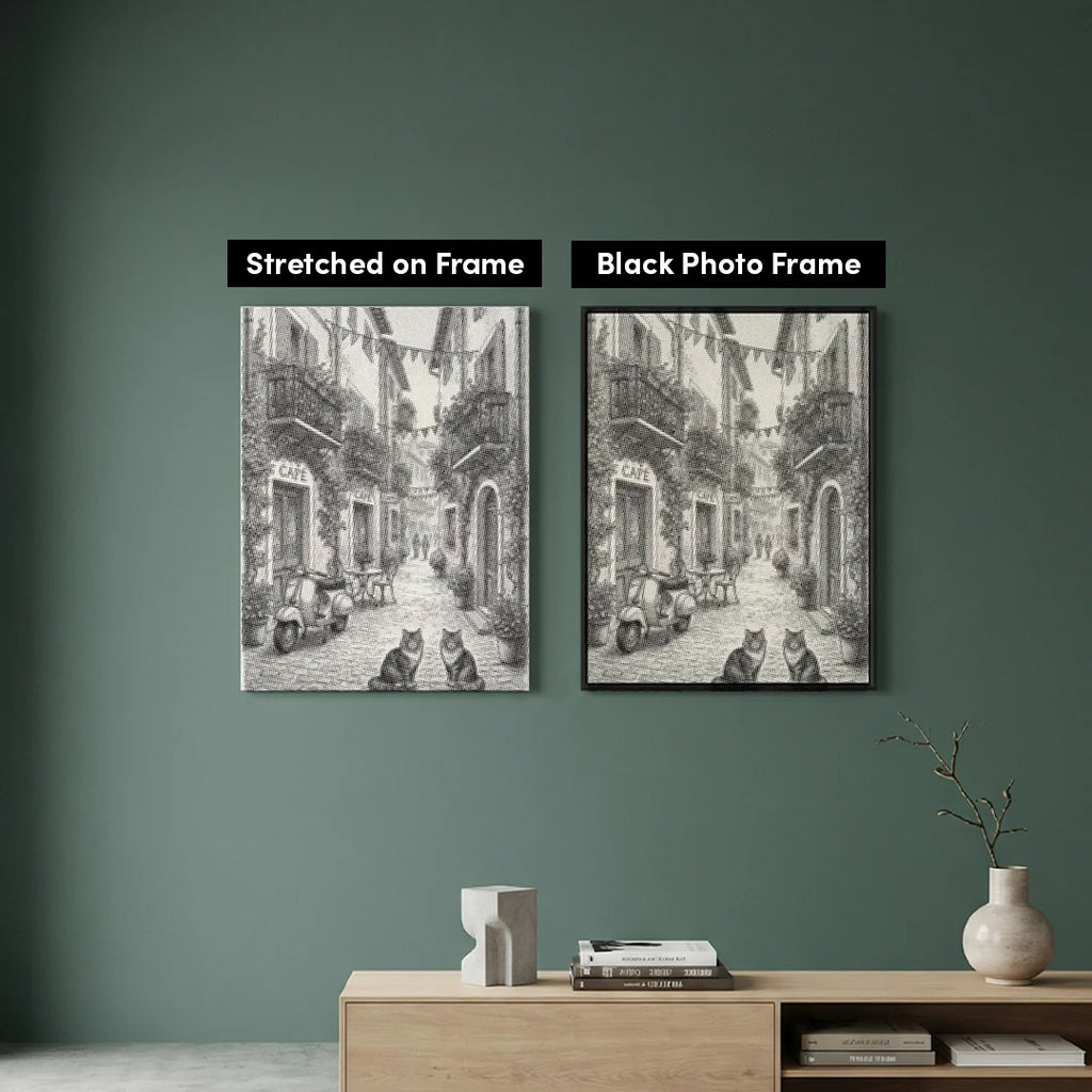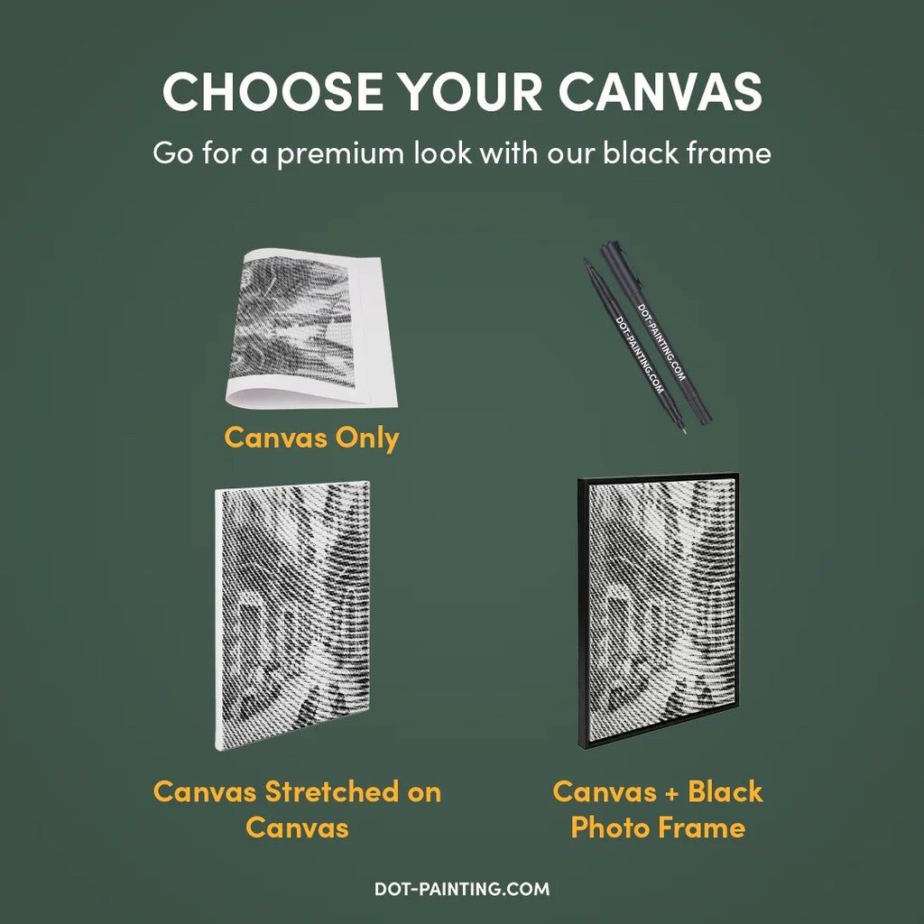 • 1x Premium lærred (rullet): Lærred i høj kvalitet med dit valgte design. Vi sender det rullet i et hårdt rør, aldrig foldet, så du starter med en glat, krølfri overflade.