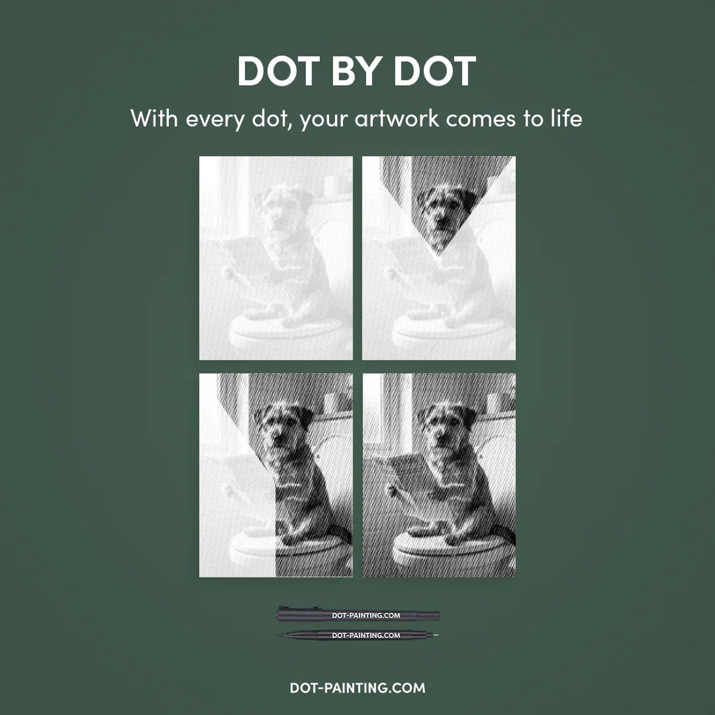 With Dot Painting, you use high-quality markers to bring the Dog on A Toilet 2 Dot Painting kit to life, one dot at a time. It’s cleaner, easier, and incredibly satisfying.