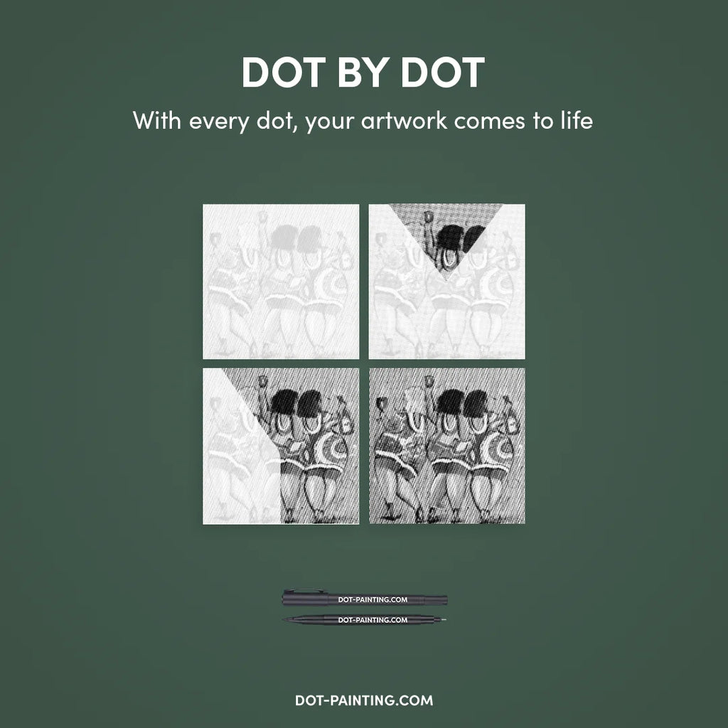 • Sæt med dobbelttippede markers: Særlige dot painting-penne med to sider:1.0mm tip: Til hurtigt at lave større prikker.0.5mm tip: Til præcision og helt små detaljer.
