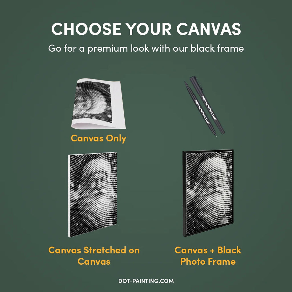 • 1x Premium lærred (rullet): Lærred i høj kvalitet med dit valgte design. Vi sender det rullet i et hårdt rør, aldrig foldet, så du starter med en glat, krølfri overflade.