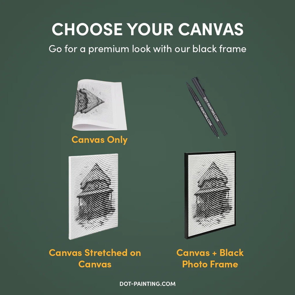• 1x Premium lærred (rullet): Lærred i høj kvalitet med dit valgte design. Vi sender det rullet i et hårdt rør, aldrig foldet, så du starter med en glat, krølfri overflade.