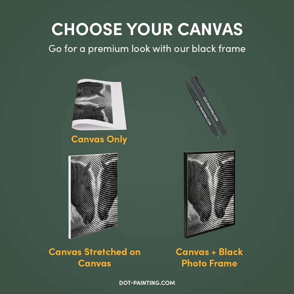 • 1x Premium Canvas (Rolled): High-quality canvas featuring your chosen design. We ship it rolled in a hard tube never folded so you start with a smooth, wrinkle-free surface.