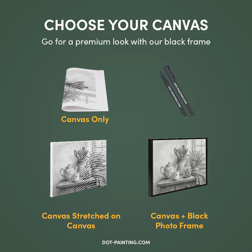 • 1x Premium lærred (rullet): Lærred i høj kvalitet med dit valgte design. Vi sender det rullet i et hårdt rør, aldrig foldet, så du starter med en glat, krølfri overflade.