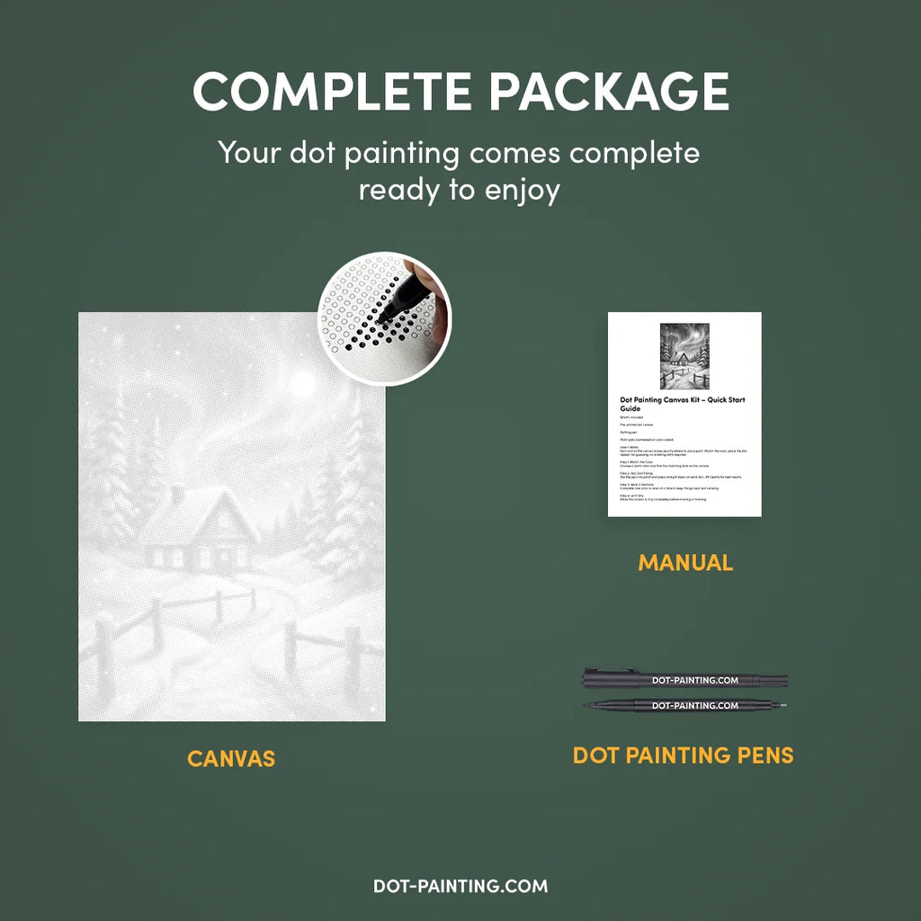 • 1x Premium lærred (rullet): Lærred i høj kvalitet med dit valgte design. Vi sender det rullet i et hårdt rør, aldrig foldet, så du starter med en glat, krølfri overflade.