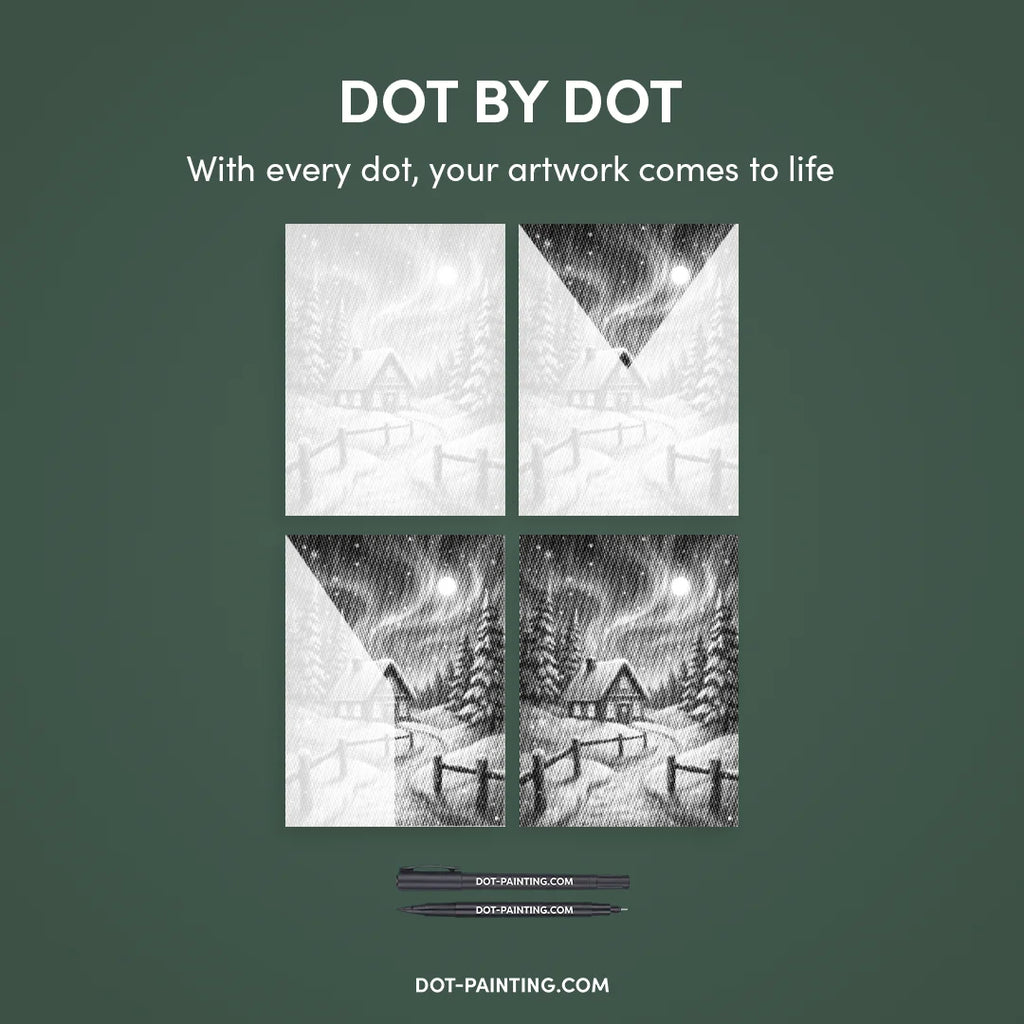 • Sæt med dobbelttippede markers: Særlige dot painting-penne med to sider:1.0mm tip: Til hurtigt at lave større prikker.0.5mm tip: Til præcision og helt små detaljer.