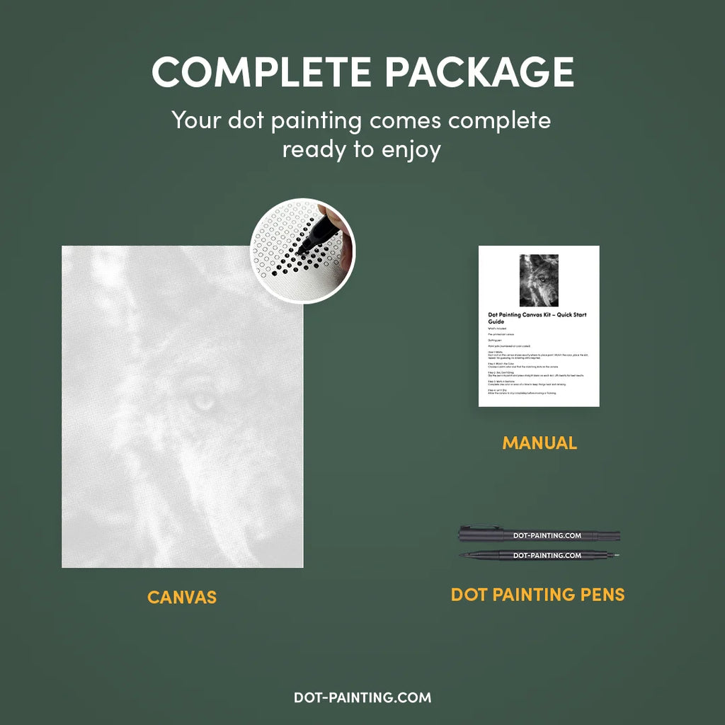 • 1x Premium Canvas (Rolled): High-quality canvas featuring your chosen design. We ship it rolled in a hard tube never folded so you start with a smooth, wrinkle-free surface.